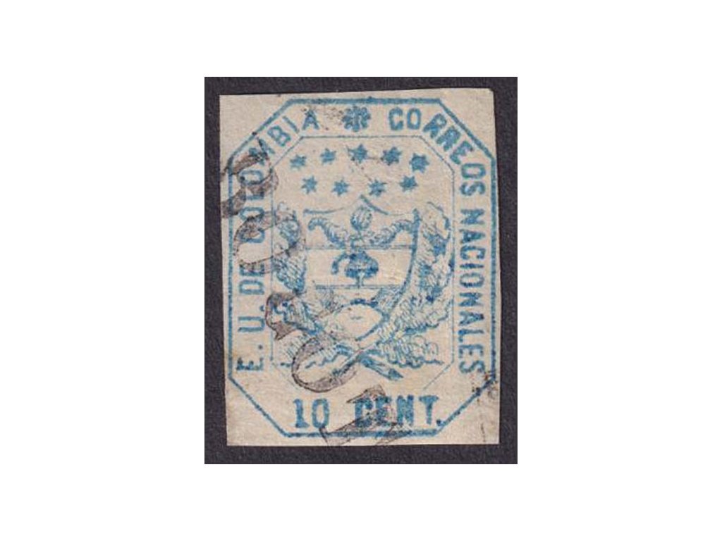 Poštovní známka, Kolumbie, 1863, 10 C Znak, MiNr.19x, razítkované, lehký lom