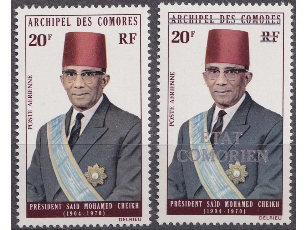 Poštovní známka, Komory, 1973/1975, 20Fr Prezident, MiNr.148,202, **