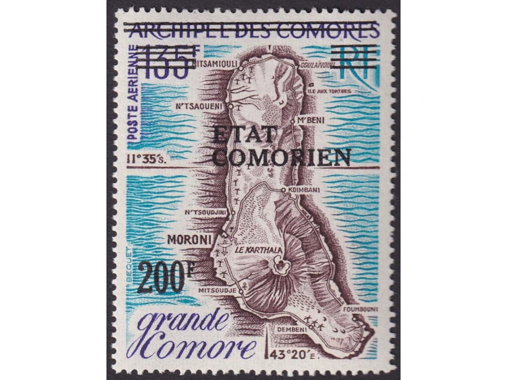Poštovní známka, Komory, 1975, 200 Fr / 135 Fr Mapa, MiNr.242, **