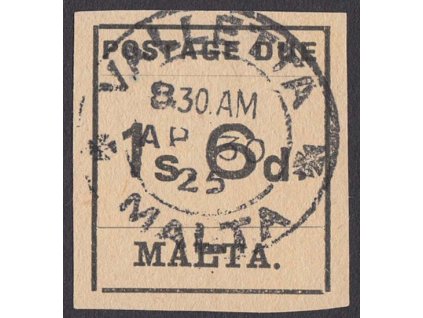 Malta, 1868, britská známka 6 P Viktoria, MiNr.30, razítko Malta, lehké faldy, krátké zoubky