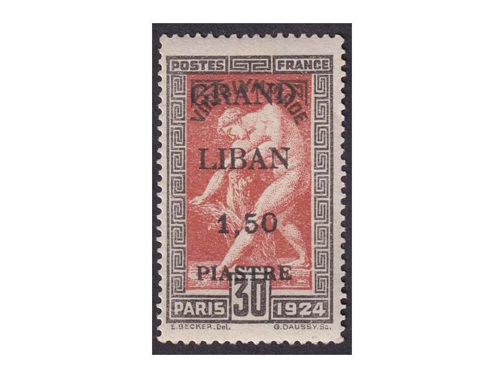 Poštovní známka, Libanon, 1924, 1.50Pia/30C přetisková, MiNr.24, **