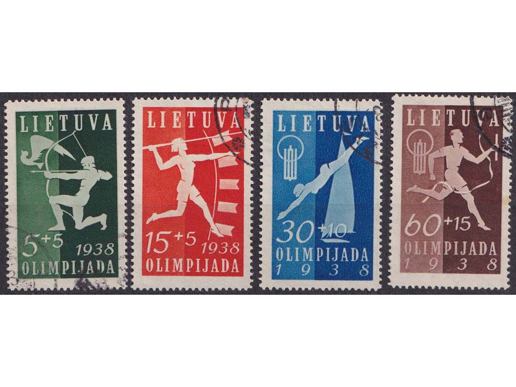 Lietuva, 1938, 5-60 C série Sport, MiNr.417-20, razítkované, 60 C skvrnka
