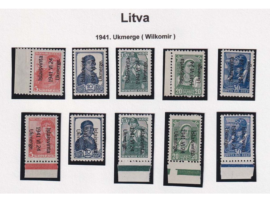 Litauen, Ukmerge, 1941, 5-30 K série, MiNr.1-5, ** , bez záruky, 2 série