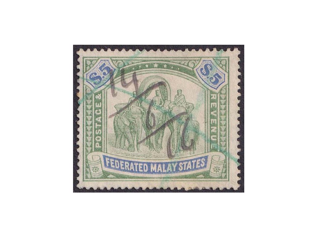 Poštovní známka, Malay, 1904, 5 Dolarů Sloni, MiNr.37, škrty, horší jakost - viz. foto