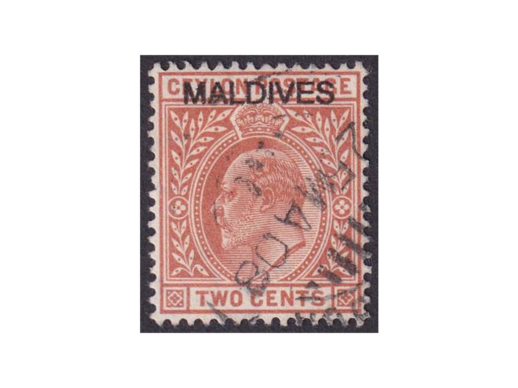 Maledivy, 1906, 2 C Eduard s přetiskem, MiNr.1, razítkované