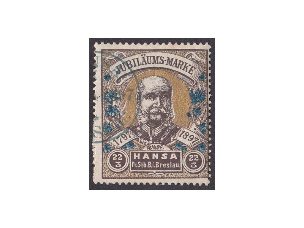 Městská pošta, Breslau, 1897, 2 1/2 Pf Jubulejní, razítkované, těžká nálepka - viz. foto
