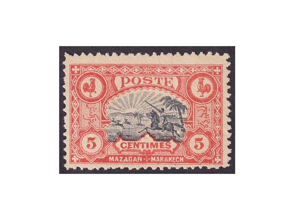 Poštovní známka, Maroko, Mazagan, 1920, 5 C místní pošta Marakeš, ** , slepá perforace