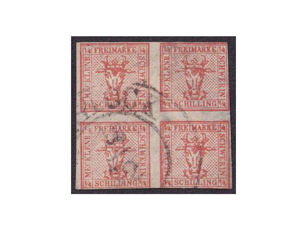 Poštovní známka, Mecklenburg-Schwerin, 1856, 4/4 S Znak, MiNr.1, razítkované, horší jakost - zeslabeno