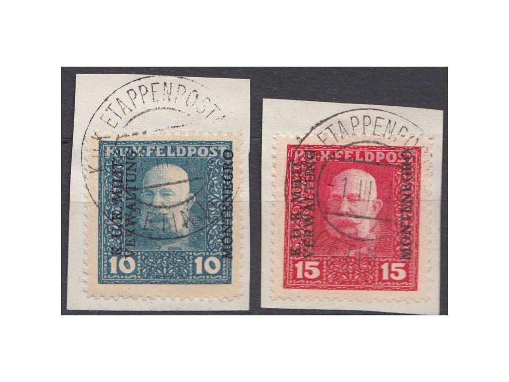 Montenegro, 1917, 10-15 H Franc Josef, výstřižky, MiNr.1-2