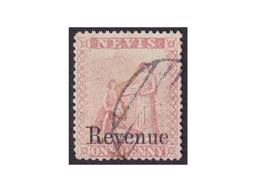 Nevis, 1882, 1 P Stempelmarken, MiNr.1, razítkované/přepis, lom