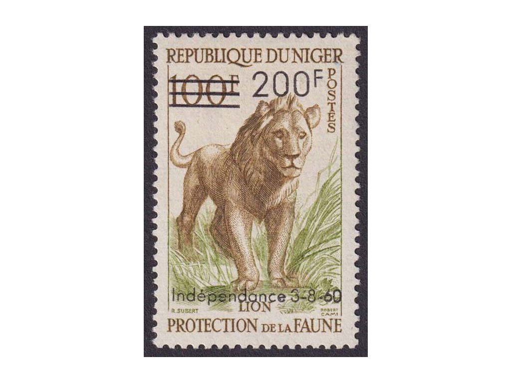 Poštovní známka, Niger, 1960, 200Fr/100Fr Lev, MiNr.16, * po nálepce