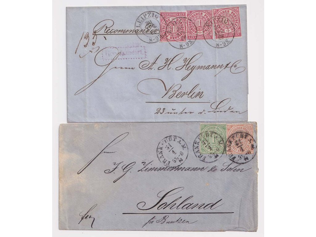 Poštovní dopis, Nordpostbezirk, 2 ks celistvostí z let 1868-1870, různé frankatury a jakost, DR Leipzig resp. Frankfurt