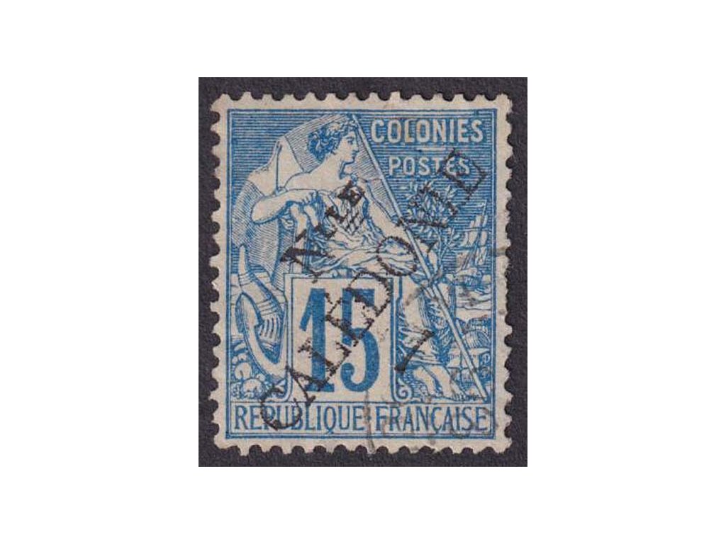 Nová Kaledonie, 1892, 15 C Alegorie s přetiskem, MiNr.25, razítko, dv