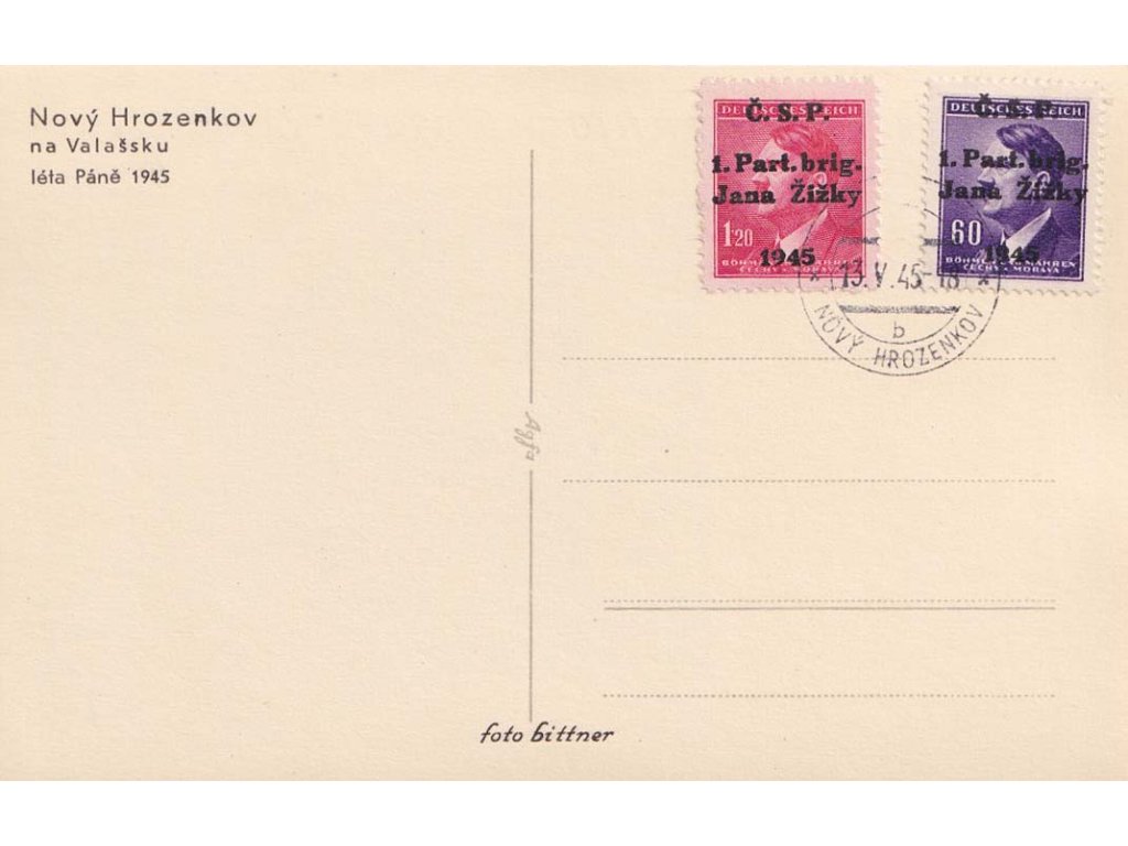 Revoluční, Nový Hrozenkov, 1945, DR Nový Hrozenkov, pohlednice vyfr. zn. Hitler s přetiskem, neprošlé