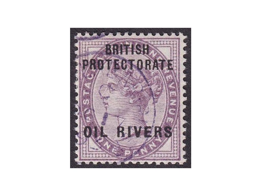 Poštovní známka, Oil Rivers, 1892, 1 P Viktoria s přetiskem, MiNr.2, razítkované