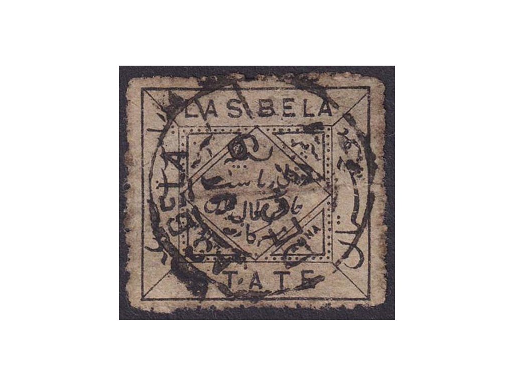 Pakistán, Las Bela, 1897, 1/2 A Znak, MiNr.1, razítkované, lom, stopy stáří