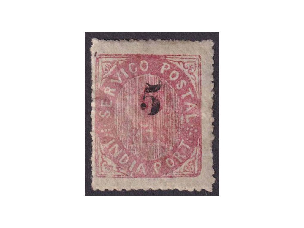 Portugalská Indie, 1881, 5(R)/15R růžová, MiNr.78, těžká * , dv