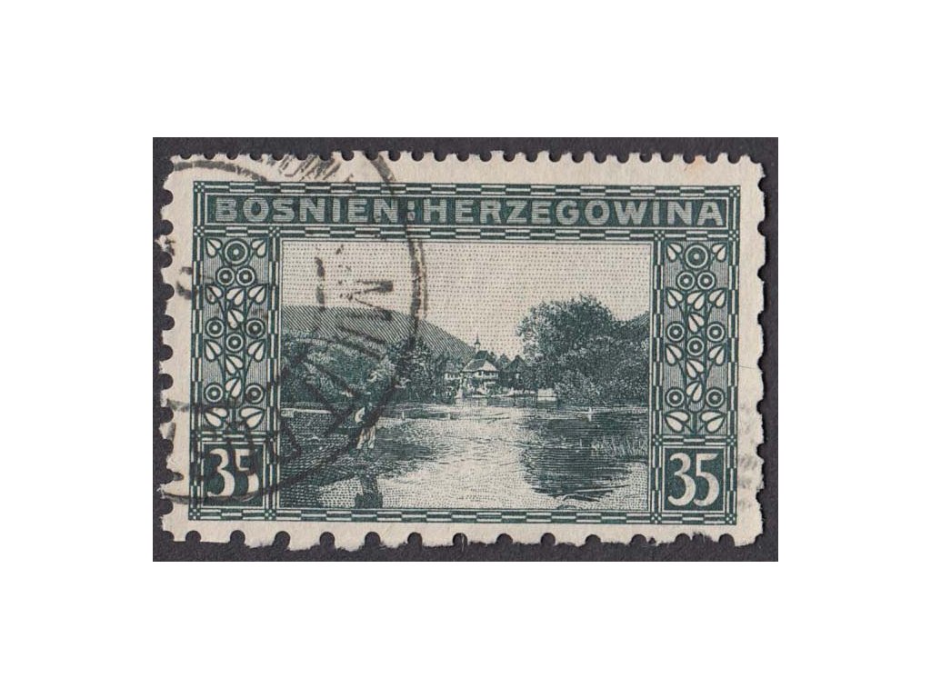 Poštovní známka, 1906, 35 H Krajinka, smíšené zoubkování, MiNr.38, razítkované, krátký zoubek