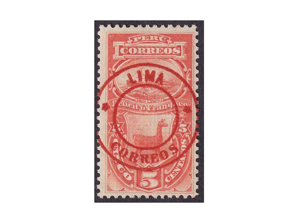 Poštovní známka, Peru, 1881, Lima, 5 C s přetiskem, MiNr.12, * po nálepce