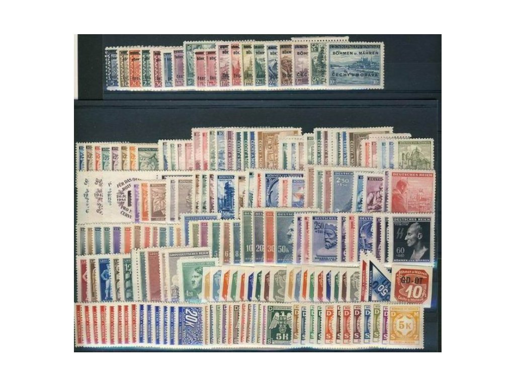 Protektorát Čechy a Morava., kompl. řada známek 1-122, včetně Doplatních , Novinových a Sl