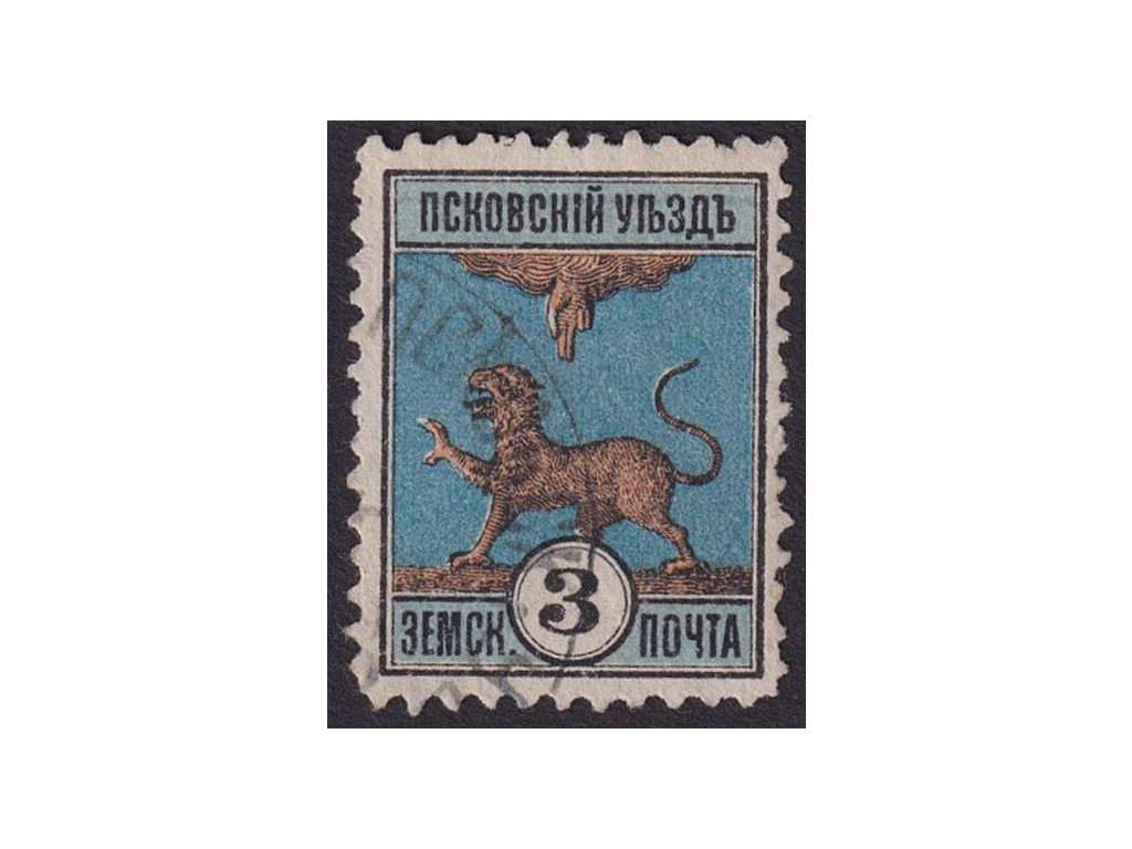 Poštovní známka, Pskov, 1892, 3 K Znak, zemská pošta, razítkované