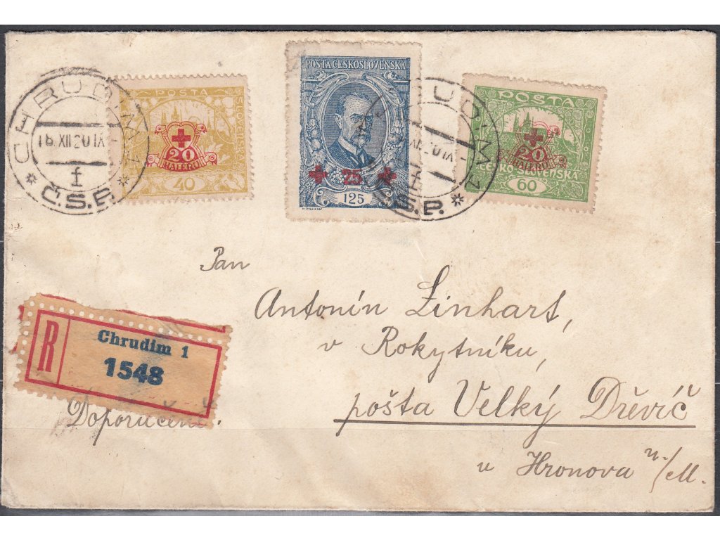 R-dopis vyfr. sérií zn. ČK, razítko CHRUDIM 16.12.20 + příchozí VELKÝ DŘEVIČ