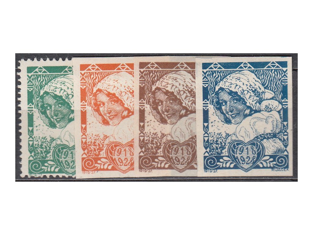 Rijáček, návrh na čs. zn. "Dívka v kroji", 4 kusy, každá jiná, * po nálepce