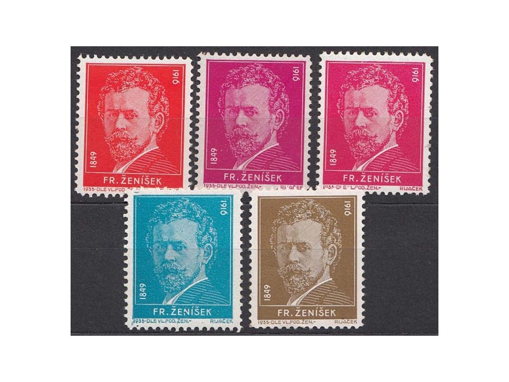 Rijáček, návrhy na čs. zn. Ženíšek, 5 kusů, ** , každá jiná