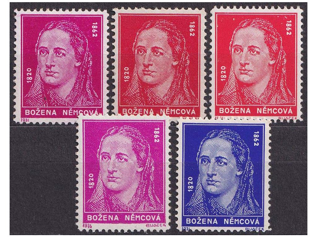 Návrhy, Rijáček, nepřijatý návrh na čs. zn. Němcová, 5 kusů, ** , každá barva či odstín jiné