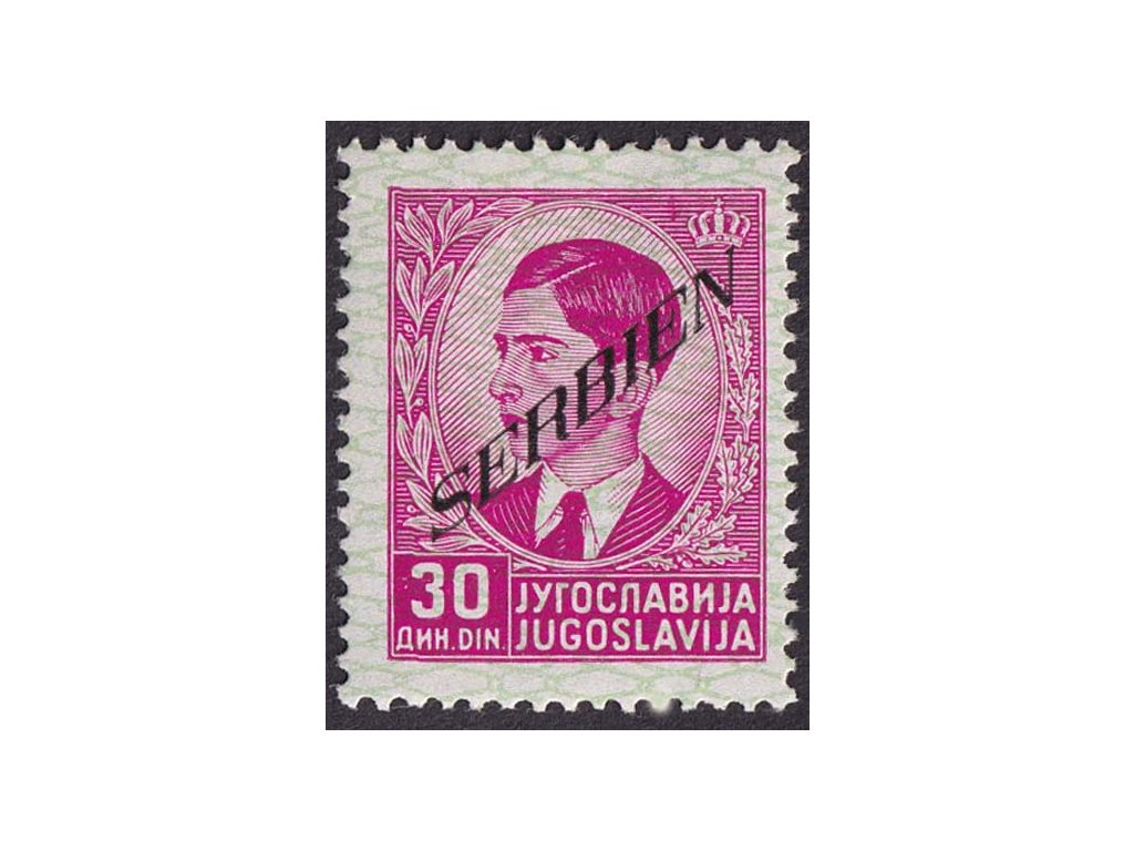 Poštovní známka, Serbien, 1941, 30 Din s přetiskem, MiNr.45, * po nálepce