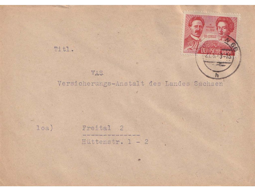 Sovětská zóna, Společné vydání, 1949, dopis vyfr. sérií zn. MINr.229 Výročí, DR Berlin, zasláno v Německu, hledaná frankatura, stopy pošt. provozu
