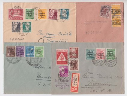 Poštovní známky, Sovětská zóna, West-Saschen, 1945, 3-12Pf Číslice, 8 kombinací soutisků, jedna známka lehce zeslabena - viz. foto, katalog Michel MiNr.W Zd 13-16, S Zd 3-6, kvalita - */**