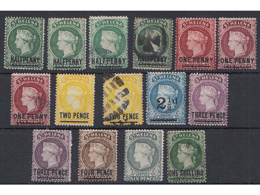 St. Helena, 1884, studijní sestava 15 ks známek Viktoria, */razítkované