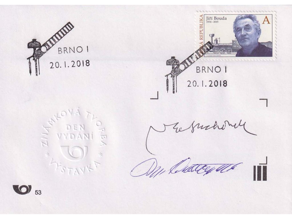 Suchánek, Ondráček, podpisy na pamětní obálce, 2018