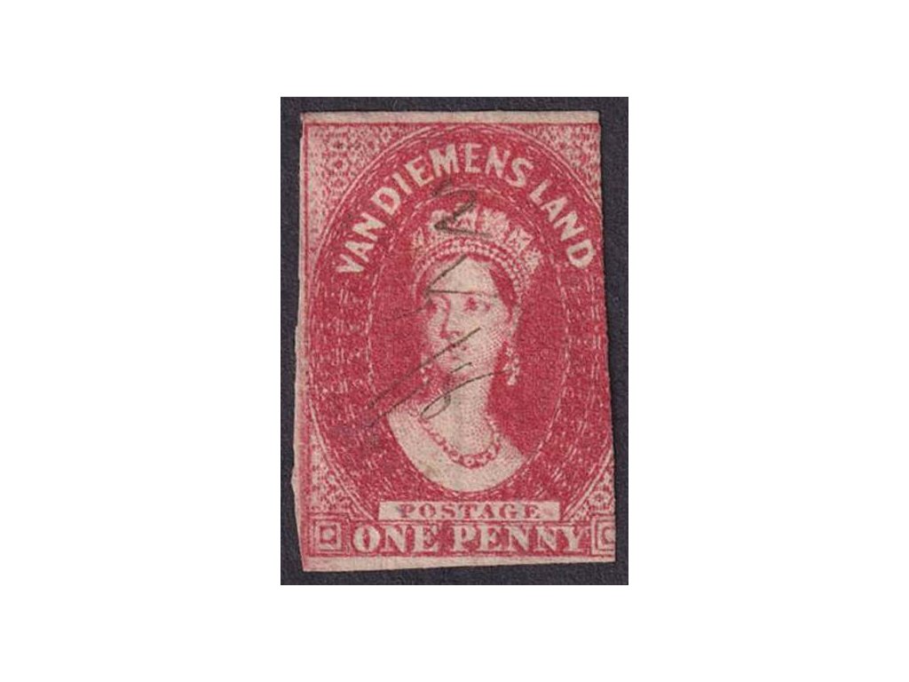 Poštovní známka, Tasmánie, 1857, 1 P Viktoria, MiNr.9a, přepis