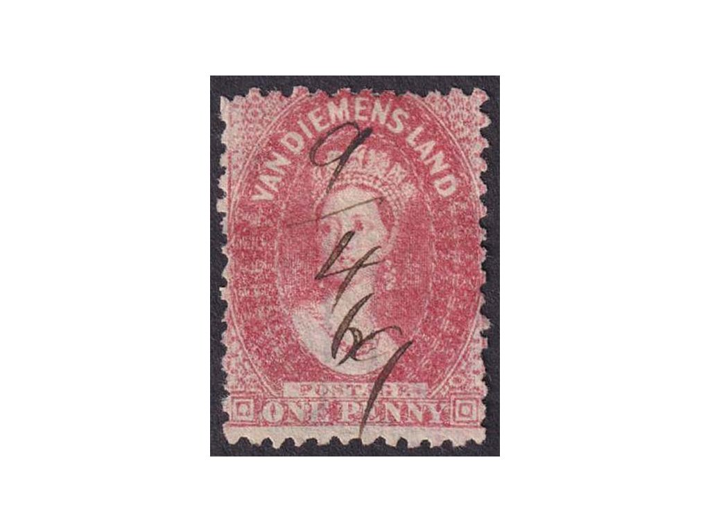 Poštovní známka, Tasmánie, 1864, 1 P Viktoria, MiNr.15, přepis