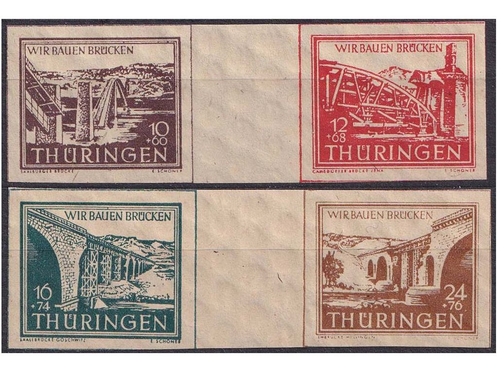 Poštovní známka, Thüringen, 1946, 10-24 Pf meziarší série Mosty, MiNr.112-15, **