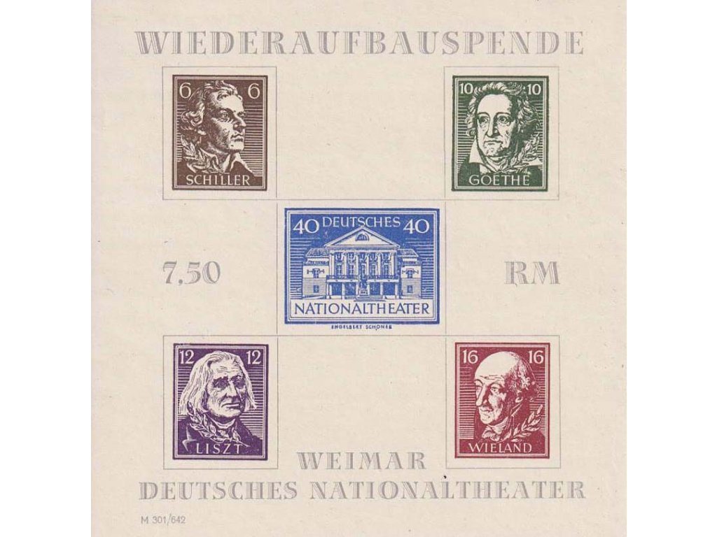 Poštovní známka, Thüringen, 1946, aršík Wiemar-theaters, MiNr.Bl.3A, (*)