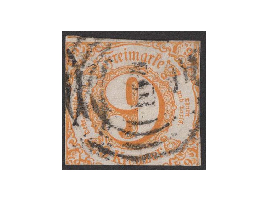 Poštovní známka, Thurn a Taxis, 1859, 9 Kr oranžovožlutá, MiNr.23, razítkované