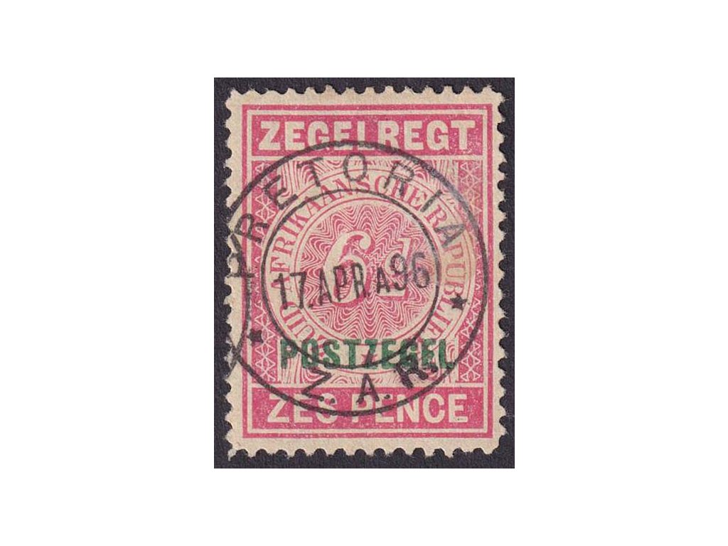 Poštovní známka, Transwaal, 1895, 6P červená/zelená, MiNr.46, razítkované
