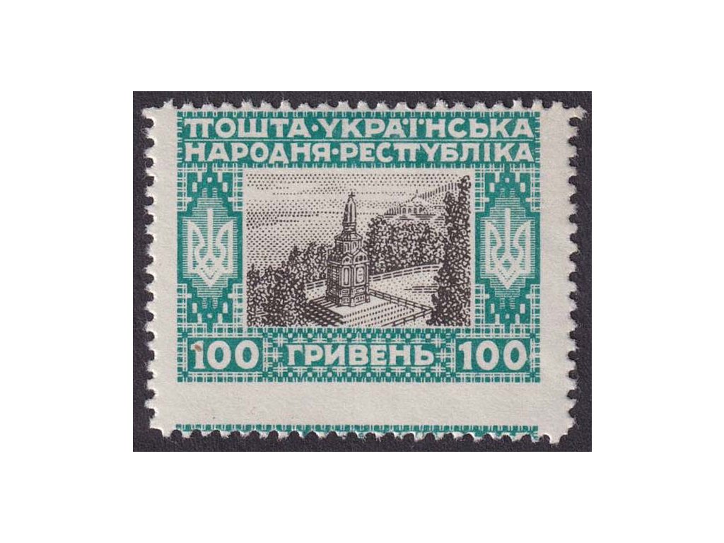 Poštovní známky, Ukrajina, 1920, 100 G nevydaná, posun perforace, MiNr.XIII, * po nálepce
