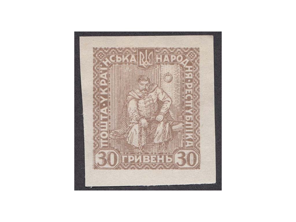 Poštovní známka, Ukrajina, 1920, 30 G nezoubkovaná, nevydaná, MiNr.VIII, (*)