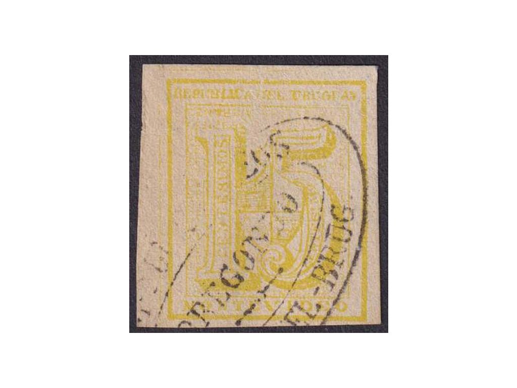 Poštovní známka, Uruguay, 1866, 15 C žlutá, MiNr.30, razítkované