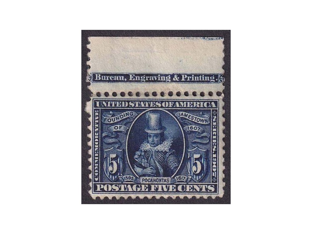 Poštovní známka, USA, 1907, 5 C Výstava James-Town, MiNr.161, * po nálepce