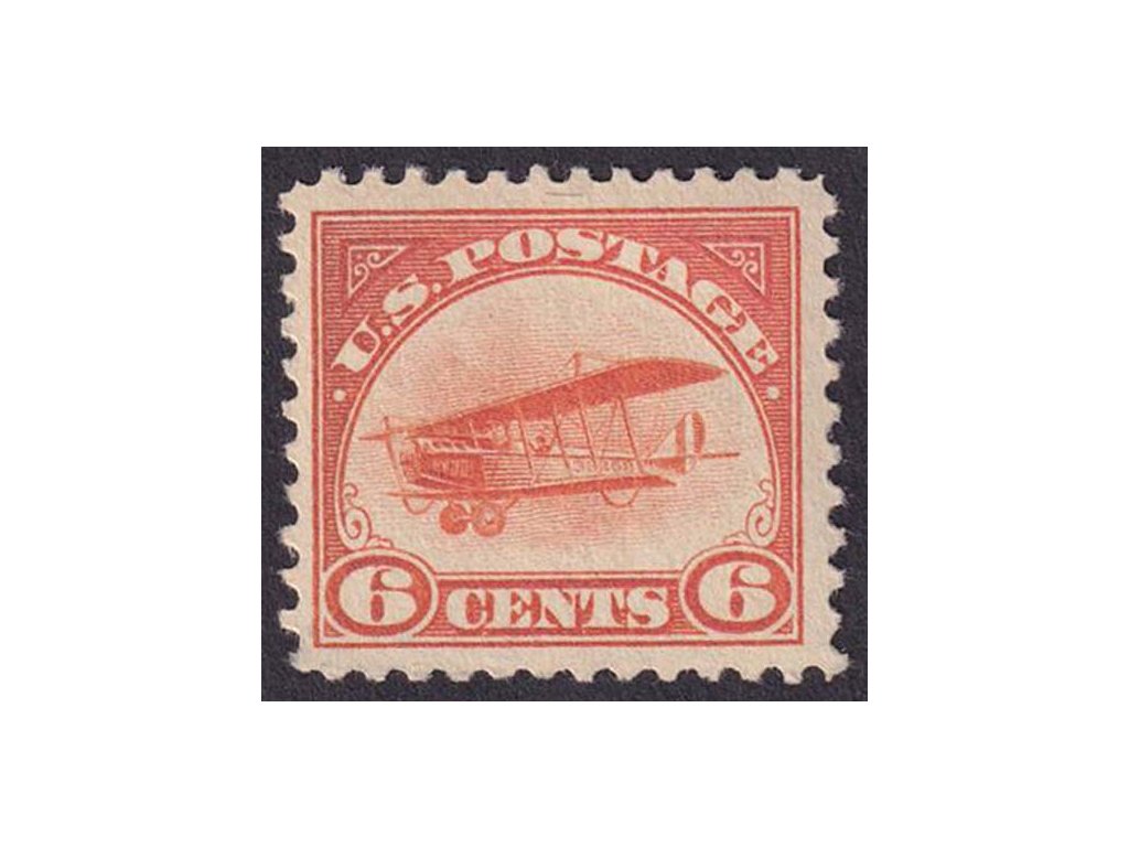 Poštovní známka, USA, 1918, 6 C letecká, MiNr.248, * po nálepce, lehká odřenina na rubu - viz. foto