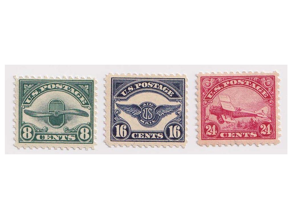 Poštovní známka, USA, 1923, 8-24 C letecká série, krátký zoubek, MiNr.286-288, */**