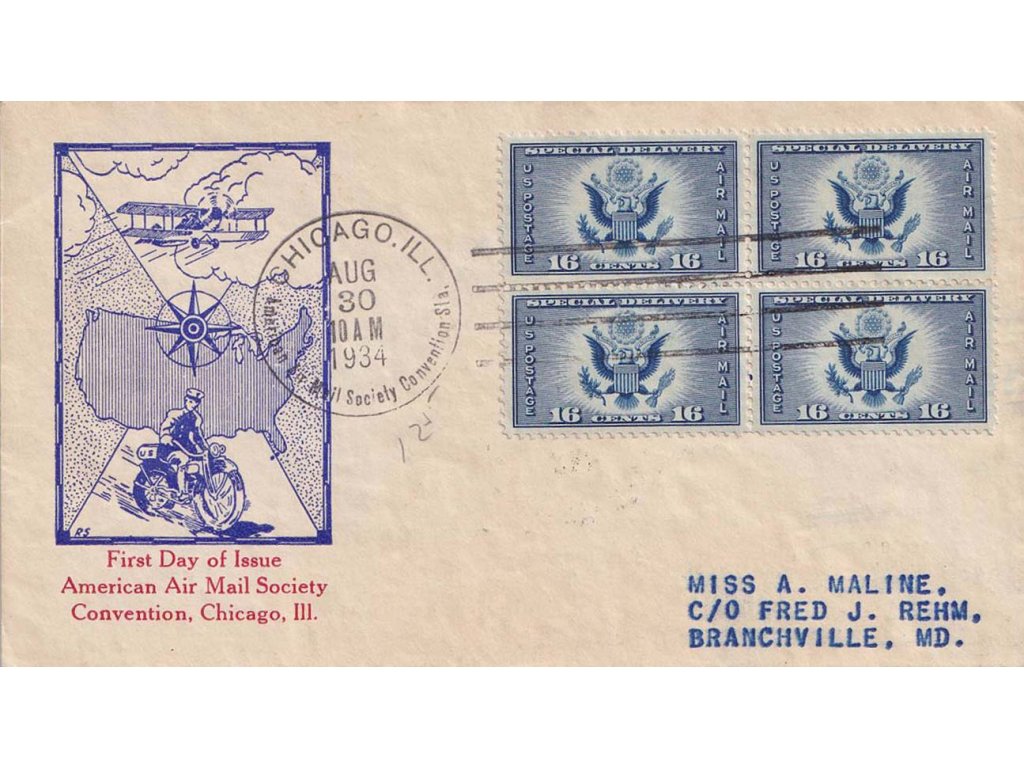 Poštovní celistvost, USA, 1934, obálka FDC zaslaná v USA, stopy pošt. provozu