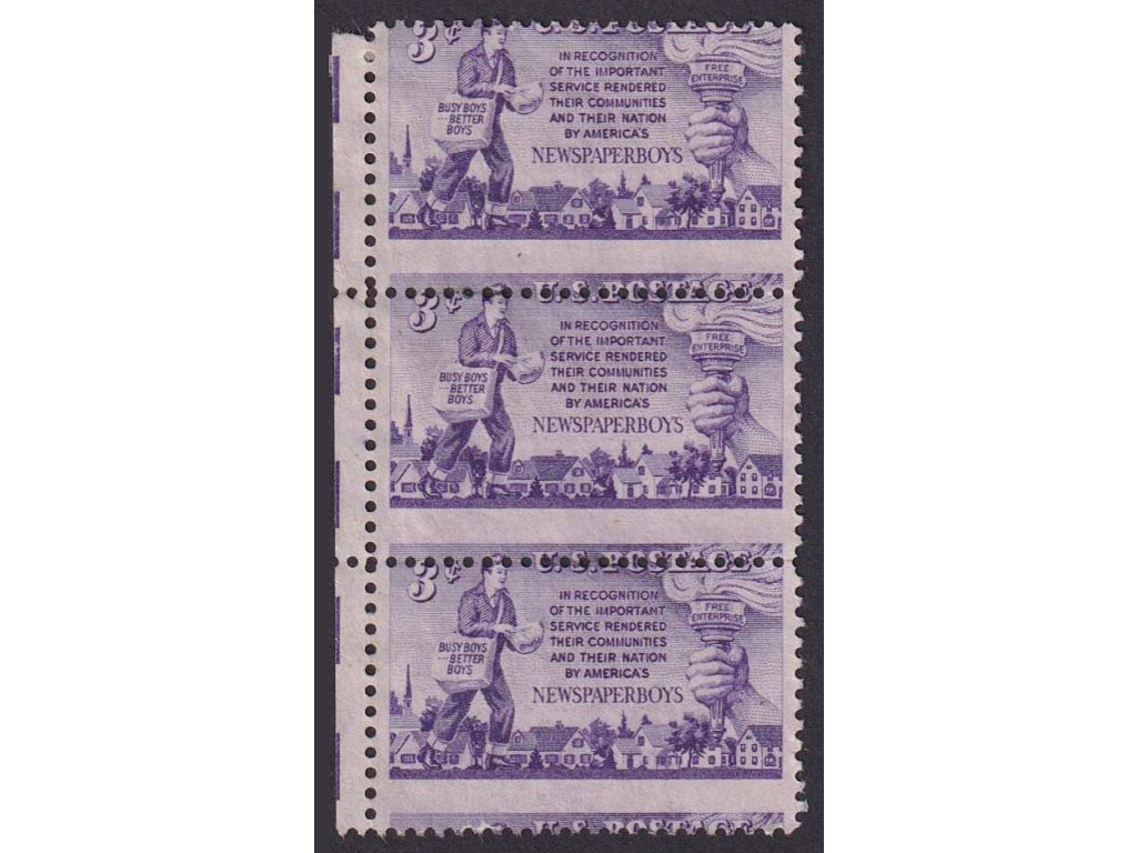 Poštovní známka, USA, 1952, 3 C Newspaper boys, posun perforace, (*) bez lepu, sundáno z dopisu - viz. fotooto