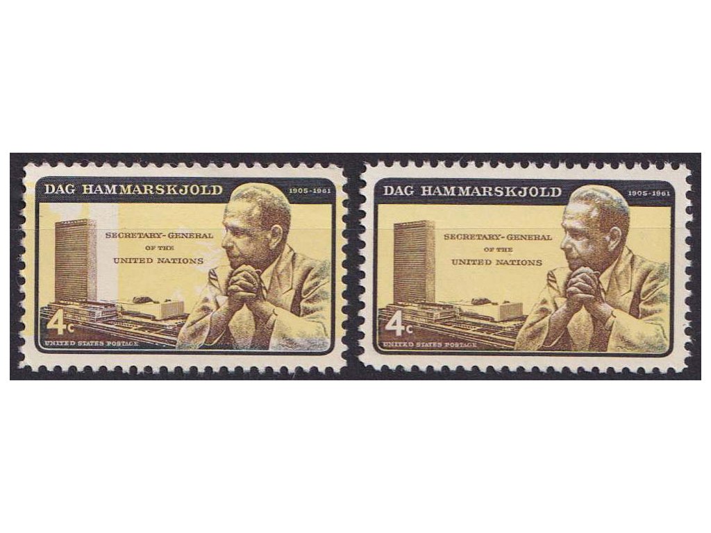 USA, 1962, 4 C Hammarskjöld, otočený žlutý podtisk, MiNr.833I,II, **