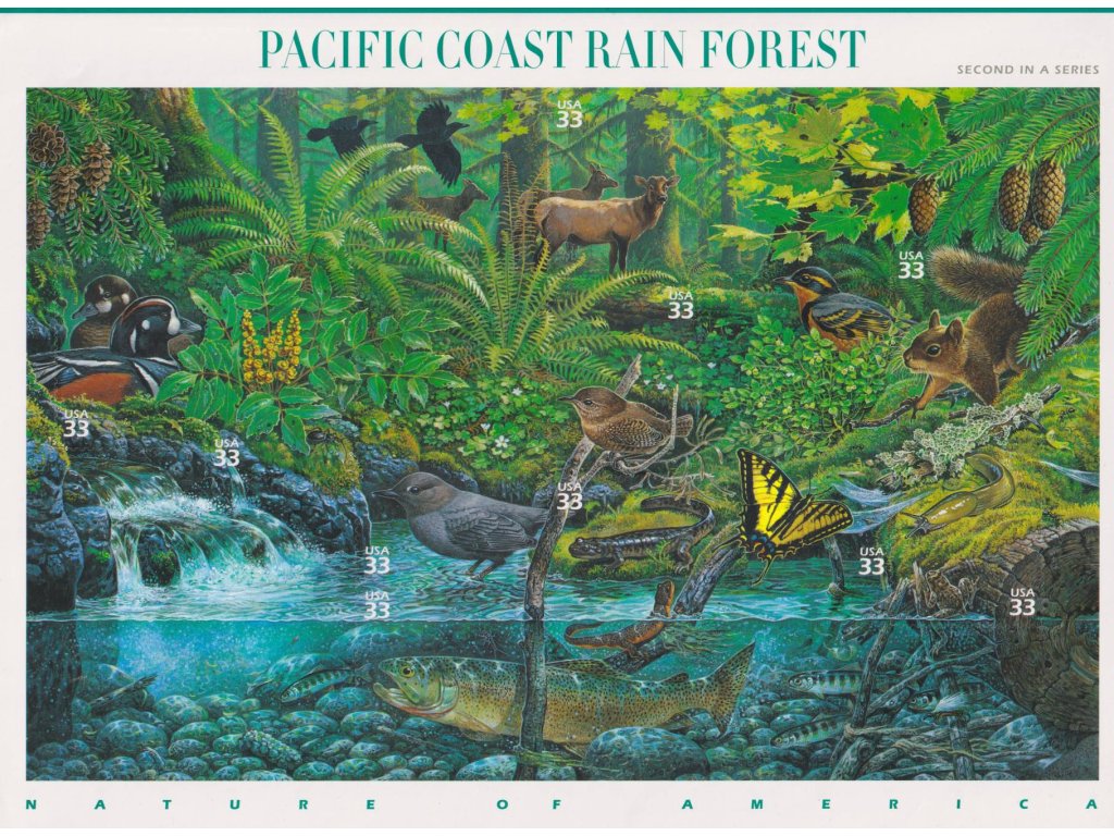 Poštovní známka, USA, 2000, 33 C aršík Deštný prales, MiNr.3265-74, samolepící, **